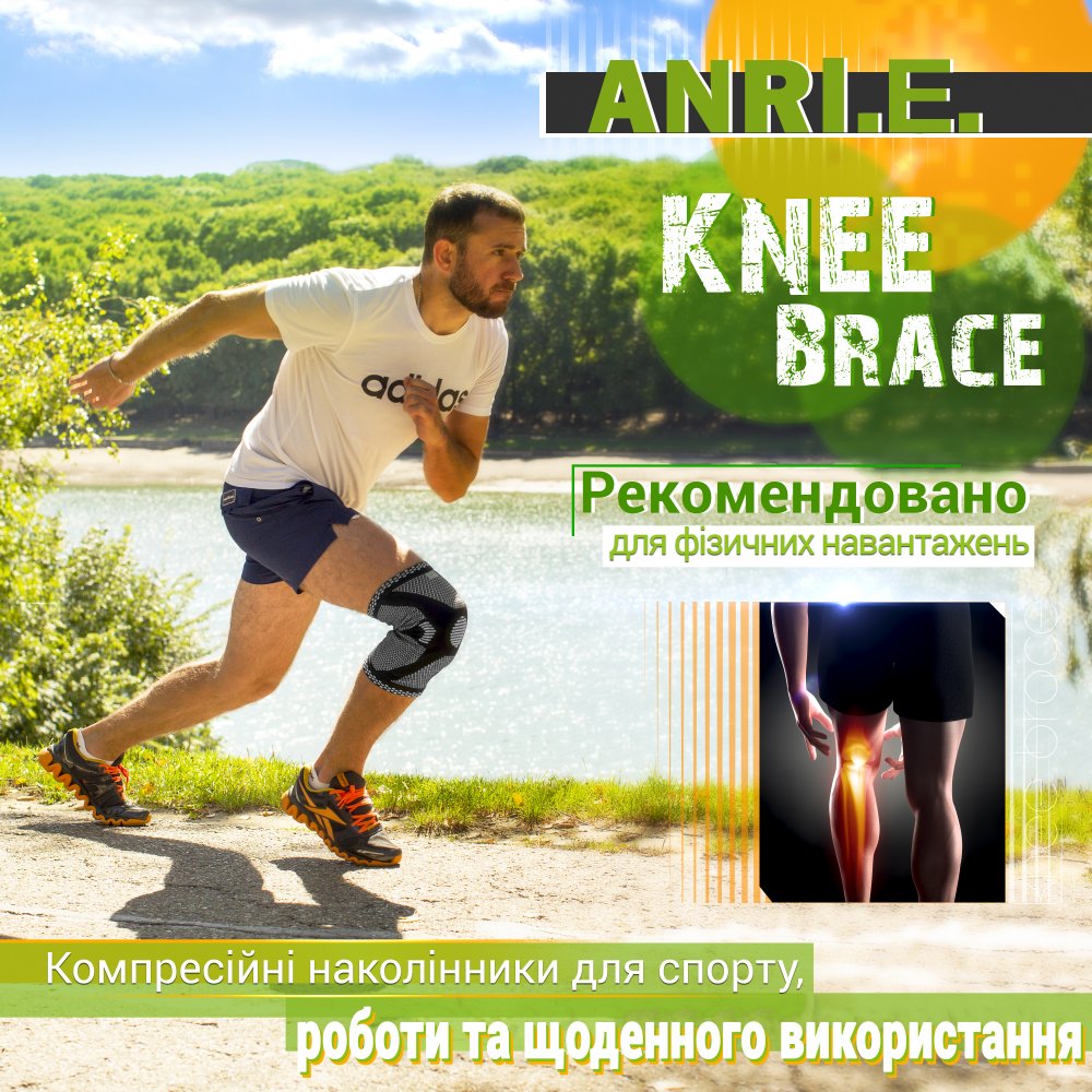 Наколенник Усиленный Эластичный ANRI.E. KS-001 (Чёрно-Серый, 1 шт)